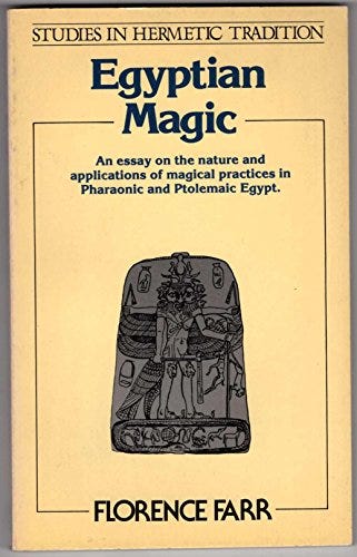 关于古埃及魔法技艺 的书籍众多,其中一本由弗洛伦斯·法尔(Florence Farr)所著,我们在神秘学著作中对其进行了评论。