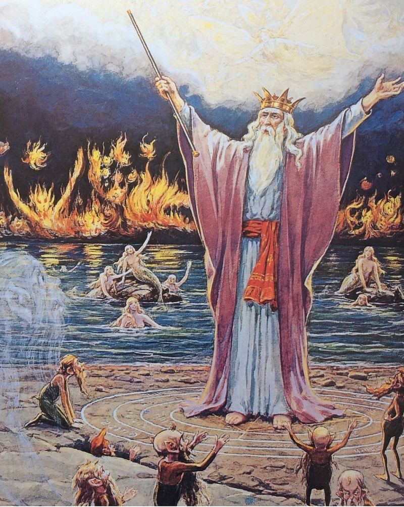 『 在所有这些骚动中,有一种平静、不可动摇的镇定,一种连这些不守规矩的军团都屈服的力量。在一定的限 度内他们无法超越,因为他们永远被一种「意志」所控制,这种意志对元素精灵的力量具有至高无上的统治权。而这些元素精灵就像从地狱释放一样,它们在暴风雨中持续的战斗直至深夜。